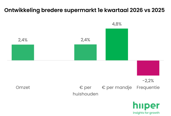 Joep Smeets, Managing Director van Hiiper, concludeert: “De markt lijkt wat rustiger, maar onderliggend verandert er nog altijd veel. Value blijft leidend, maar de groei concentreert zich bij steeds minder spelers. Tegelijk zien we dat timing steeds belangrijker wordt, zoals rond Pasen. Dat maakt het speelveld complexer. Tel daar de geopolitieke ontwikkelingen, het groeiende grensshoppen én de koerswijzigingen bij onder andere Jumbo bij op en je hebt als retailer te navigeren door enorm uitdagende en snel veranderende marktomstandigheden. Kort op de bal en flexibiliteit zijn dan ook de sleutels tot succes de komende kwartalen. We houden het scherp in de gaten.”